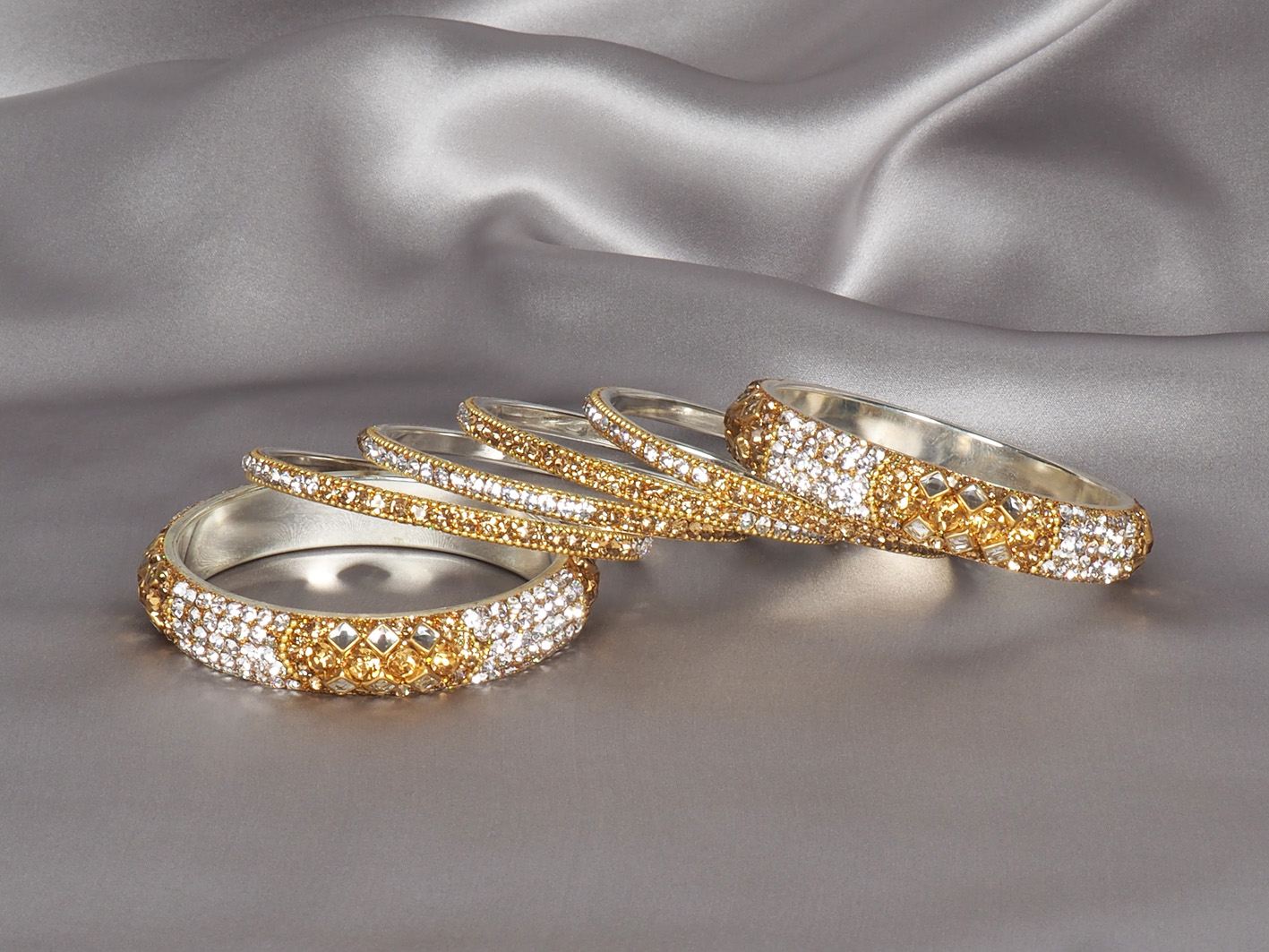 Unsere aufwendig und mit Liebe zum Detail aus Glas und Metall gearbeiteten indischen Bangles, machen ihrer jahrtausende alten Tradition alle Ehre und verleihen Ihnen an Ihrem großen Tag einen atemberaubend verführerischen Bollywood-Look!