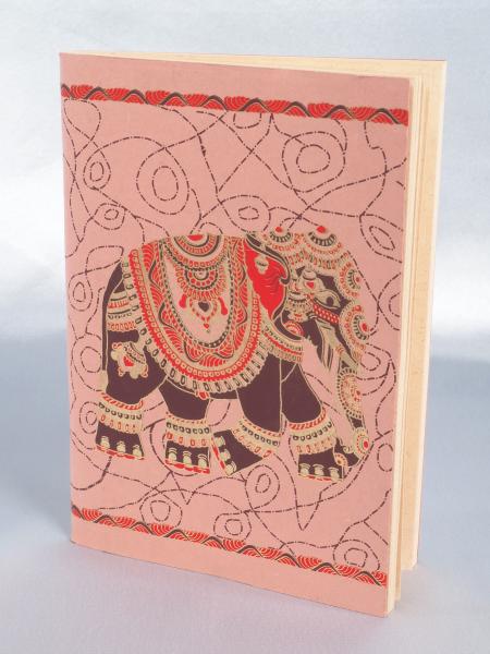 Wie all unsere Papierwaren ist es handgefertigt, aus recycelten Zellulosefasern – dem Abfallprodukt der Textilindustrie. Die Seiten sind stabil, robust und typisch Recyclingpapier-farben. Das macht unser Büchlein nicht nur zu einem idealen Wegbegleiter für unterwegs, sondern bietet auch zahlreiche Möglichkeiten zum Beschreiben, Bekleben oder zum Verschönern von Innen. Von außen wird dies wohl eher nicht mehr nötig sein, da den Pappumschlag bereits ein zauberhafter Elefant in traditionellem indischem Design, veredelt mit einem dezenten Golddruck, verziert.
