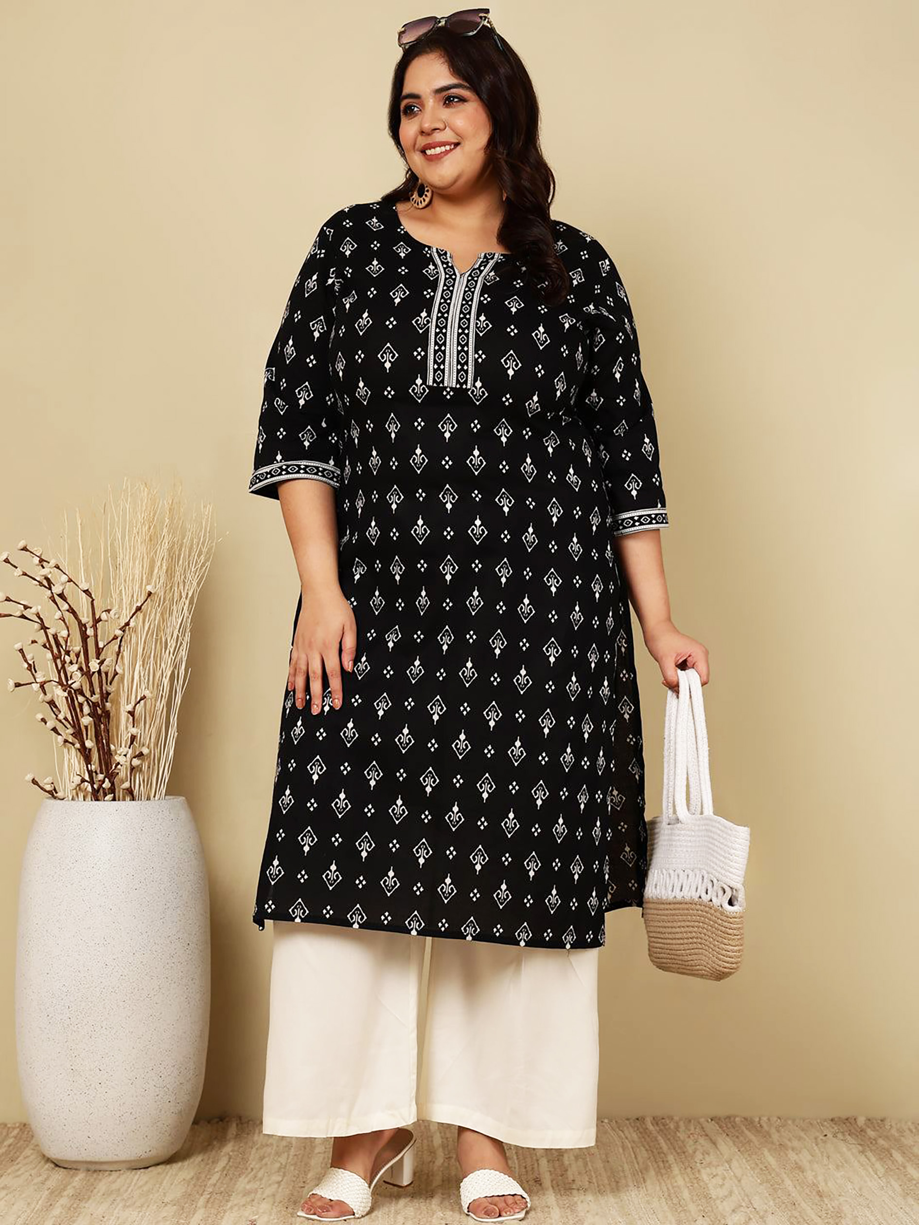Indian Cotton Tunic in Black with a subtle pattern - Plus Size (3XL-7XL)